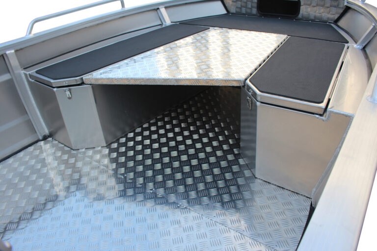 Under det triangulära rundsittgruppen fram finns gott om plats för rep och ankare eller dina fiske saker. Den öppna bakkanten på fördäcket gör det lätt att montera en frontmonterad trollingmotor. Båten har snygg och praktisk EVAmatta.